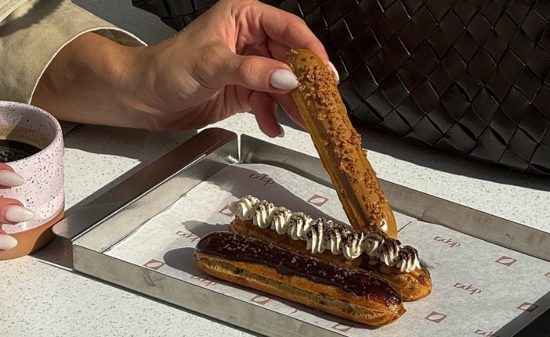 The menu is also home to quite the selection of baked goods like chocolatey eclairs, buttery almond croissants, and baguettes that make a delicious savoury sandwich.